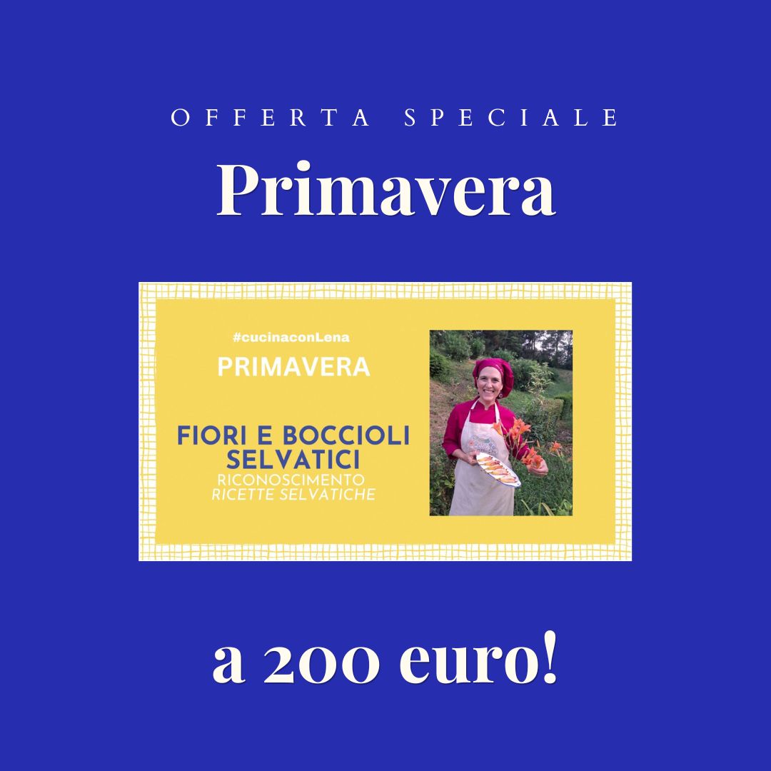 Cucina con Lena – PRIMAVERA è un videocorso stagionale dedicato ad alcuni erbe, fiori e boccioli selvatici primaverili: un percorso pratico per imparare a riconoscerli in natura, raccoglierli con buon senso e soprattutto trasformarli in cucina in piatti, condimenti e bevande super gustosi, belli da vedere, senza glutine, a basso contenuto di zuccheri.